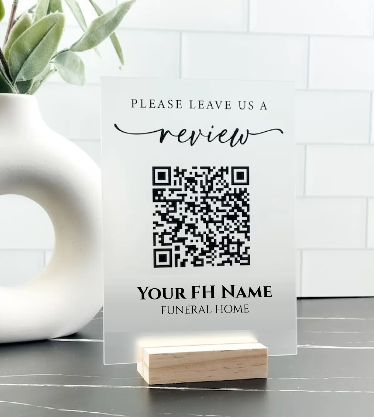 Gather more 5 star reviews by placing your custom review plaque in your funeral home making it easy for families to scan the QR code and leave you a positive review on Google.